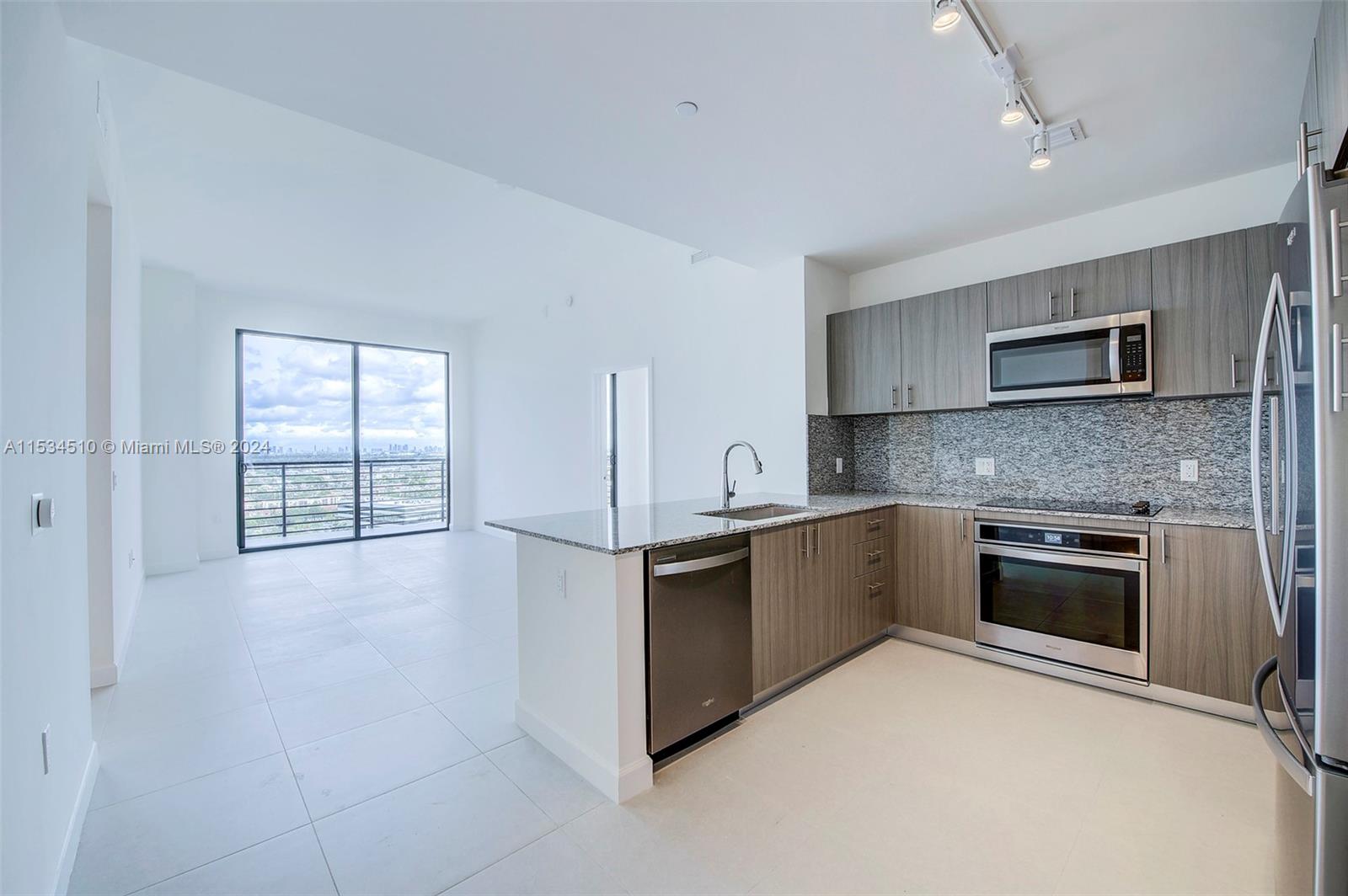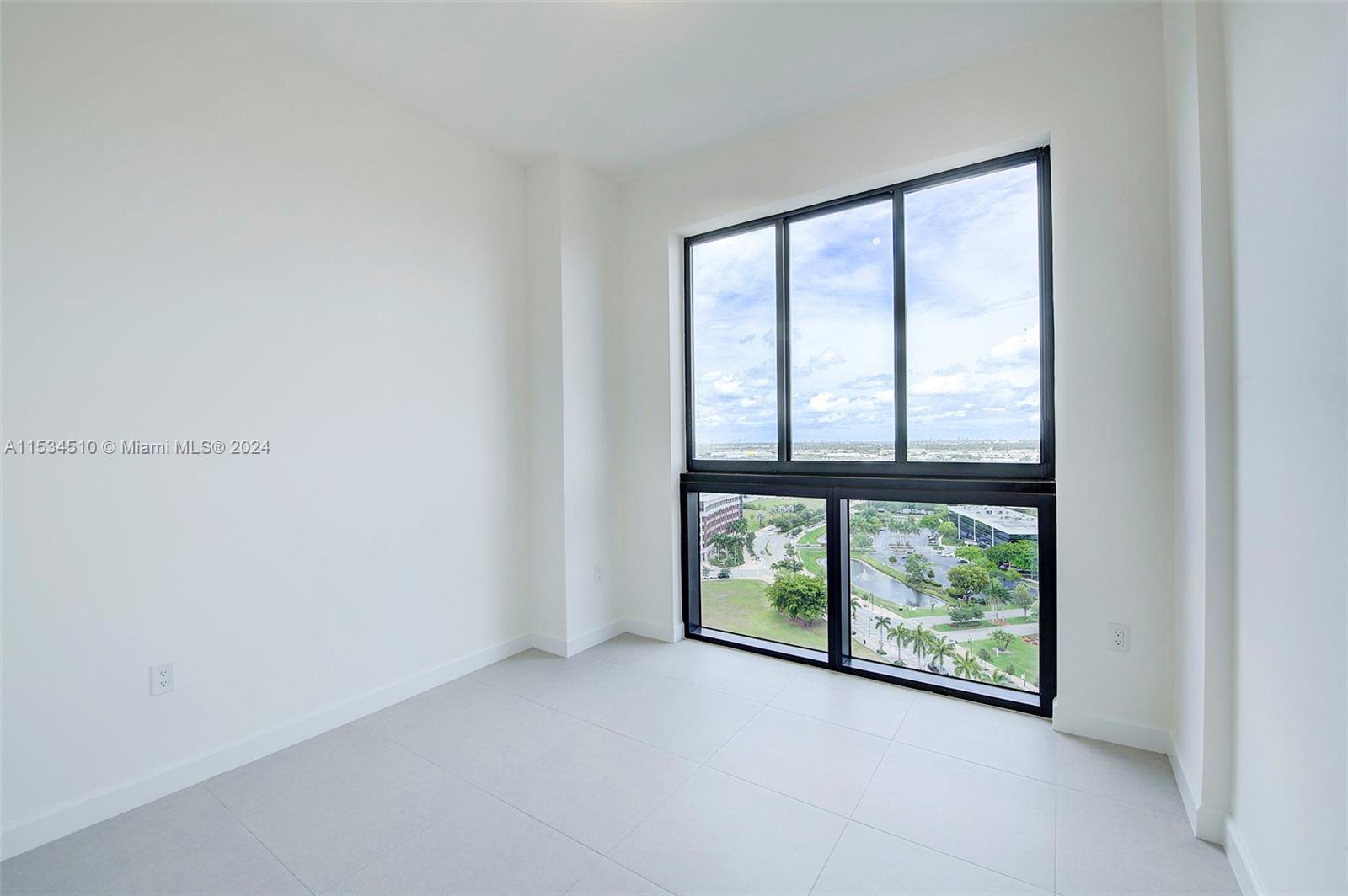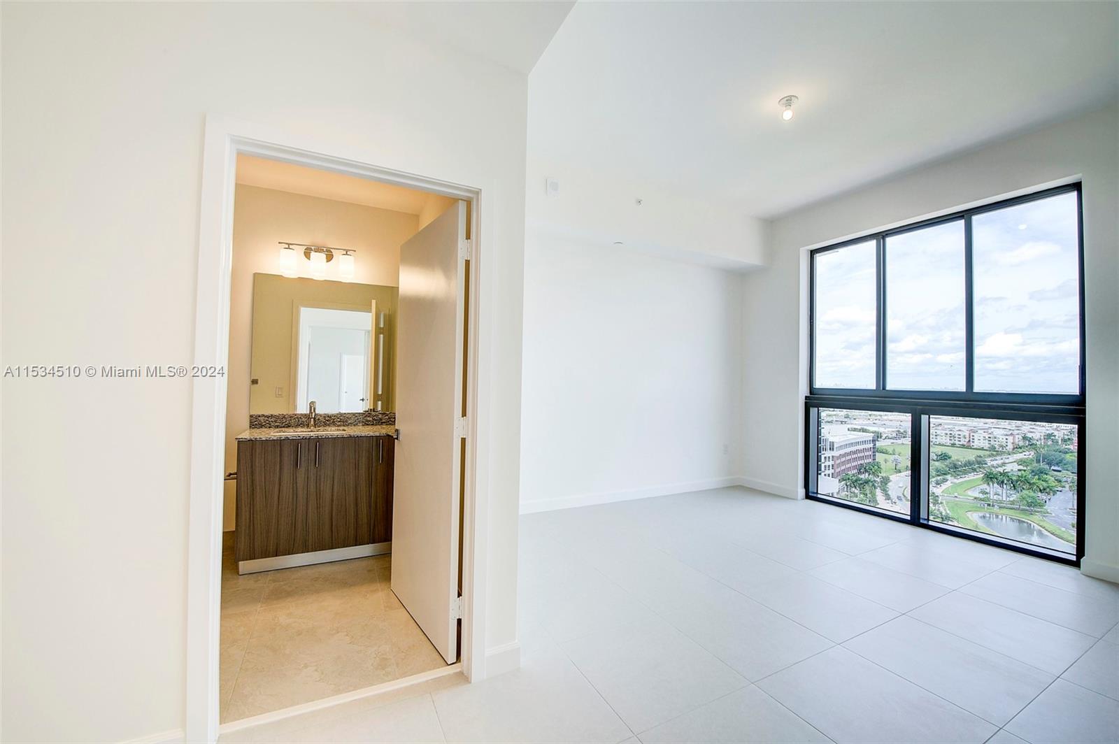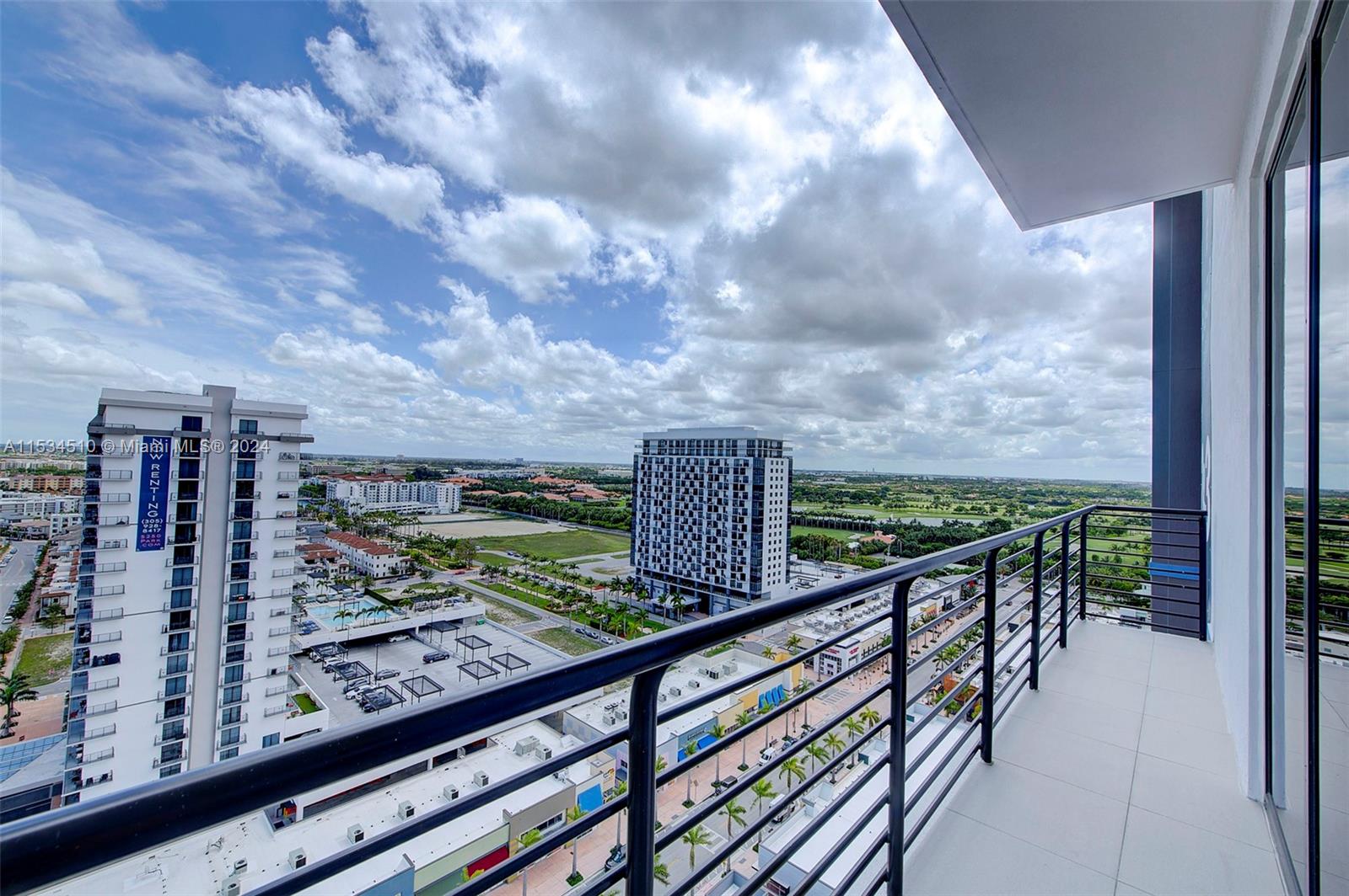 Beautiful, modern, luxurious apartment 3/3 with magnificent views of Doral, Miami International Airport, Downtown skyline, and Miami Beach skyline. Located on the 19th floor. Beautiful wrap-around balcony to enjoy the views - lots of impact sliding doors and large windows. Tile throughout the apartment, washer/dryer in unit. One bedroom with a bathroom can be independent of the rest of the living space and has its own door to the hall so you can rent it out. 2 assigned parking spaces and 1 storage unit. Granite countertops, stainless steel appliances, wooden cabinets. Excellent recreation area with high-end gym, large luxurious pool area, steam room, and 24-7 concierge and valet parking included.